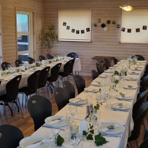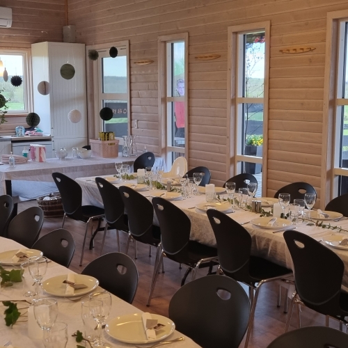 Med op til 45 gæster har vi plads til din fest. Selskabslokalet er udstyret med køkken, service, stole, grill mm.